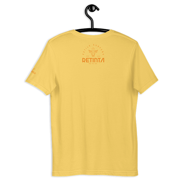 De color amarillo combinado con el color de marca en la impresión; “Atardecer”, es un canto a tantas puestas de sol en el pico esperando la ola perfecta. Camiseta muy fresca, suave y ligera, con la cantidad justa de elasticidad. Por supuesto, es cómoda y te transmitirá la buena vibra de Retinta®️.